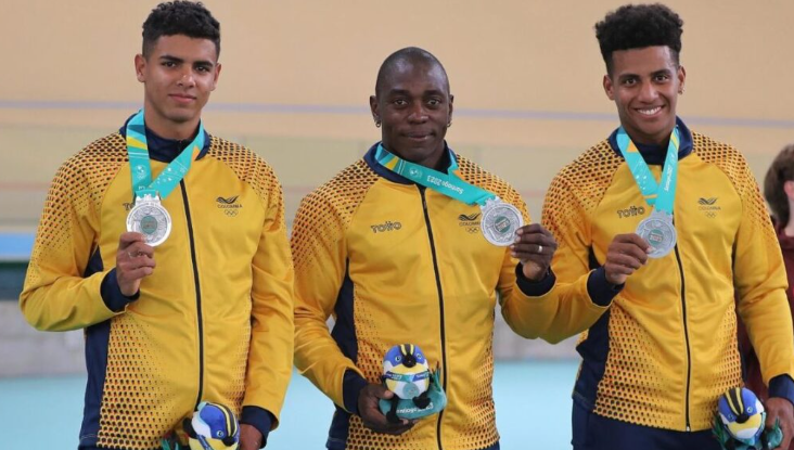 La otra plata fue del equipo masculino de velocidad en el ciclismo de pista, con el campeón mundial Kevin Quintero, acompañado por Rubén Murillo y Carlos Echeverri. La cuarta medalla del día fue el bronce de Juan Larrahondo en la modalidad de piso de la gimnasia artística.