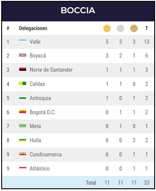 La disciplina de la boccia también cerró su participación en los VI Juegos Deportivos Paranacionales, obteniendo Cundinamarca una medalla de bronce con Rosby Fanery Martínez y Yesid Alexander Acero en parejas mixtas.